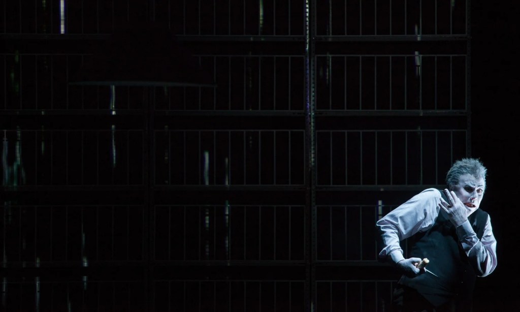 However, an emotionally charged moment does occur when Krapp listens to the scene in the punt, with the sweet and gentle modulation of Krapp´s taped voice and Wilson´s almost complete stillness. Thus, one of the meanings ‘hidden’ in the text, that the sixty-nine-year-old Krapp wants to listen to this scene because it was then he made a life-changing decision, is highlighted. Whether audiences fully grasp this or not, the moment´s significance is felt. The voice of Krapp-on-stage is full of pitch changes, while Krapp-on-tape speaks in an everyday manner, which creates contrast and reinforces self-aware theatricality, as if clownish Krapp-on-stage was histrionically showing his past realistic self. While Krapp’s Last Tape might well be Beckett´s most realistic play, Wilson´s version bestows it with a sort of ‘this is theatre’ effect.