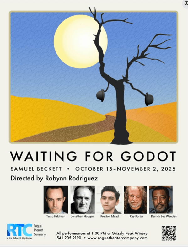 Director Robynn Rodriguez Featuring Tasso Feldman (Pozzo), Jonathan Haugen (Lucky), Preston Mead (Boy), Ray Porter (Estragon), and Derrick Lee Weeden (Vladimir) 16 October 2025 Review by Geoff Ridden In a valley full of theatre companies, all of which are dwarfed by the Oregon Shakespeare Festival (OSF), the Rogue Theater Company (RTC) is exceptional. Established by... Continue Reading →